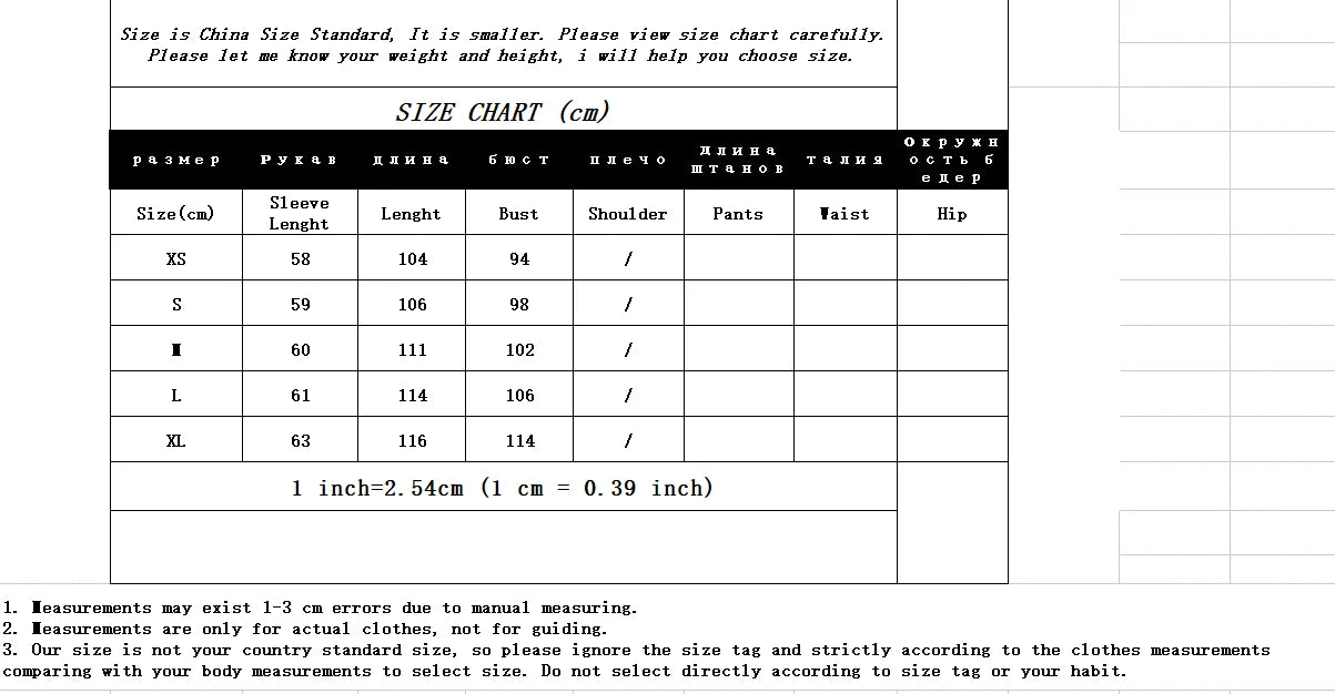 Guide des longueurs (cm)