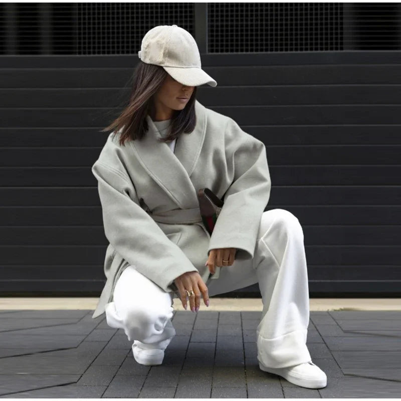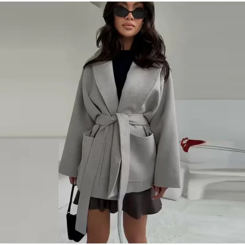 Cardigan Femme Épais Ceinturé en Laine Mélangée – Style High-Street Oversize